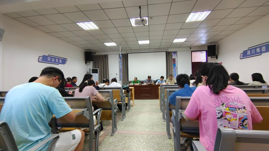 副院长王羽青主持,学校督导侯曙光教授、学院督导卢水林副教授和庄苹副教授、教务科罗鹏兴老师和各班学委参加了会议。
