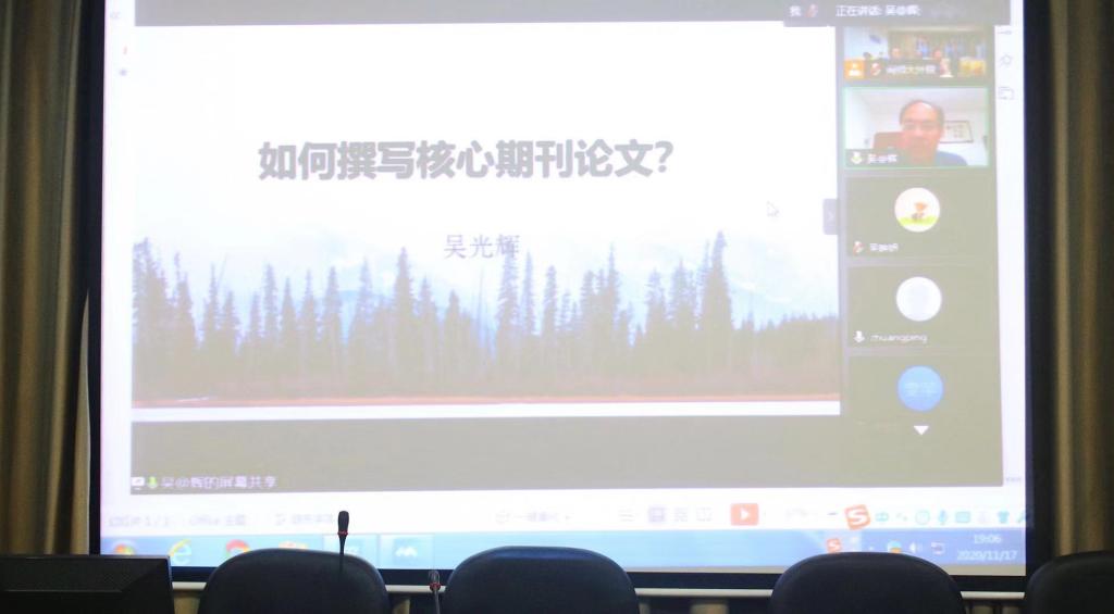 11月17日晚7时,一场以“如何撰写核心期刊论文”为主题的讲座在综中504教室举行。讲座以腾讯会议形式在线直播,厦门大学外文学院副院长、博导吴光辉教授主讲,日语系主任庄苹副教授主持,日语系全体教师参加。