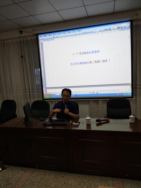 教师举行了一场讲座,曹教授的主题为“口译技能提升与翻译硕士人才培养”,会议由郑声滔教授主持,翻译系全体教师和部分对翻译感兴趣的教师聆听了讲座。曹教授的讲座主要涉及五个方面的内容:一、听力的首位重要性;二、对源语的单项记忆能力;三、口译中“笔记“的作用被过分夸大问题;四、笔译功底对口译“精确性”所起的主导作用;五、口译员的口语基本功(语音语调)的重要性,与会老师深受启发。