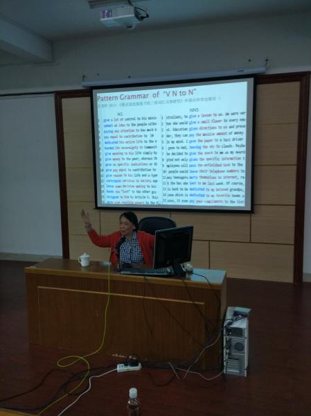 讲学,讲座共分下午和晚上两场,分别讨论的是语料库语言学的科研和教研两个问题。讲座由吴玉玲教授和卢水林老师共同主持,外语学院全体教师和部分学生参加。