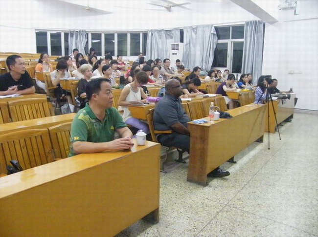 2013年6月3日晚,北爱荷华州立理工大学蔡明水教授在逸夫楼梯教二为外语系教师和全体研究生作了一场精彩的讲座。我系硕士生导师苏建华副教授担任主持,共同参加讲座的还有蔡教授的助教以及Mary博士。