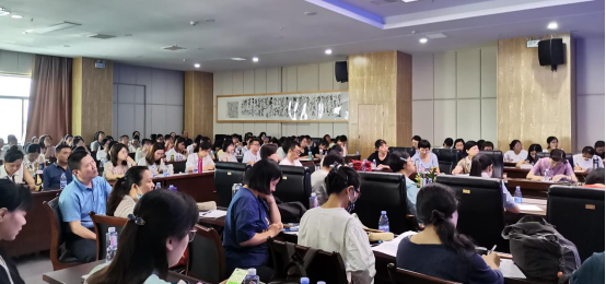 第一场讲座由杨金才教授主讲,杨教授从学术研究的属性、学术研究的总体要求、学术研究的路径、恰当的选题、研究视角的运用几个方面讲解了学术研究论文选题与写作的基本路径。同时杨教授结合教育部外语本科教学指南的要求(2020年),指出应将课程思政和新文科建设与学术研究相契合,在跨文化背景下“讲好中国故事”,并以部分论题和时事为例,阐述了文化研究、文本和理论研究、跨国界研究三个研究视角,教师们深受启发。