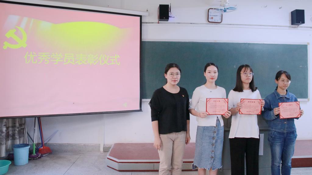 分党校第十六期入党积极分子培训班结业名单并对顺利结业的同学们表示祝贺。随后,陈慧燕老师对邱若凡、黄丽津、王文铃三位优秀学员进行了表彰。