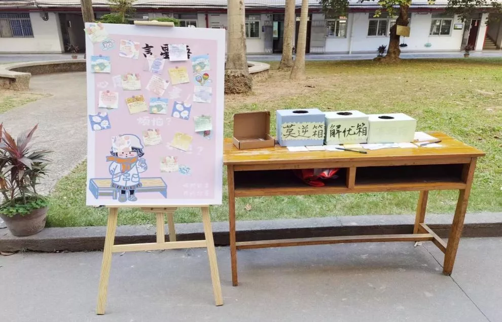 探索“心理育人+实践育人”创新工作模式,通过团学活动与社会服务让心理育人的成果正向输出。“‘瓶’水相逢,以诚‘箱’见”活动中,学生通过幸运箱接受或是传递美好的祝福,在解忧箱里留下自己的困惑和烦恼,共同记录下温暖的瞬间;“打开心窗,向阳绽放”关爱留守儿童项目活动基地为天宝镇大寨中心小学留守儿童带去关怀与温暖;“一闪一闪亮星星”关爱自闭症儿童活动将来自同学们的爱汇聚成册,让爱融进画笔,点亮星星的孩子的内心世界。