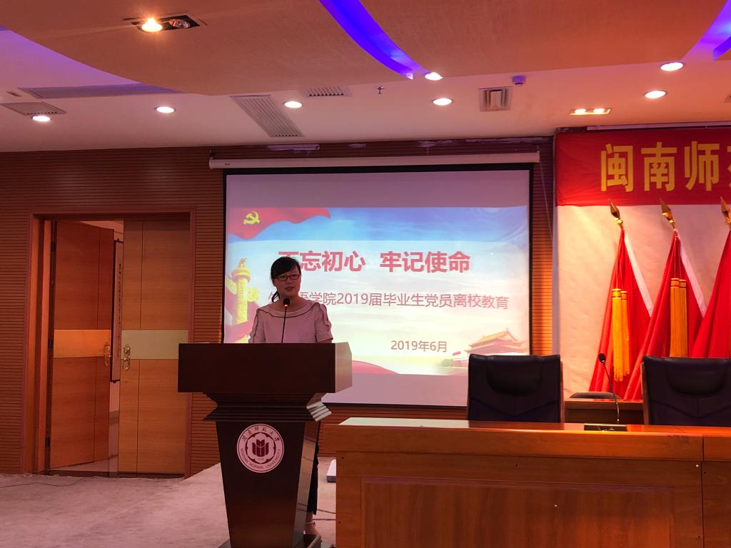在逸夫图书馆五楼报告厅举行主题为“不忘初心,牢记使命”的2019届毕业生党员离校教育。无限动漫