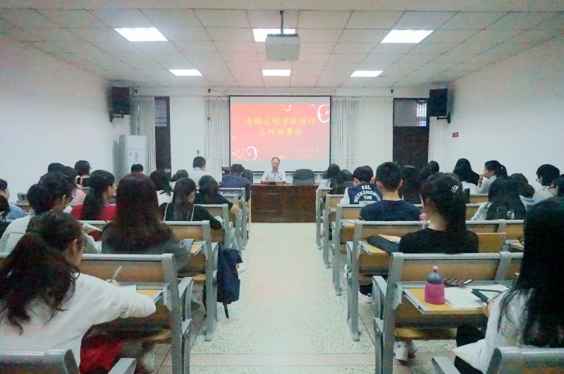 省级文明学校工作部署会在综中504会议室召开。院党委书记黄伟东、全体辅导员及主要学生干部参加了会议。