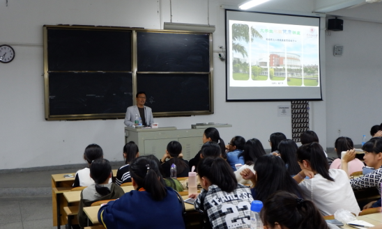 首先,赵广平老师详细介绍大学生与心理健康、大学新生常见心理问题、怎样增强大学生的心理健康、闽师大心理教育咨询中心四个方面的内容,赵老师幽默诙谐的讲课方式,赢得了17级学生们阵阵掌声。赵广平老师指导的研究生吴亚楠也来到现场,吴亚楠为新生讲解心理测试结果数据的分析与含义,并且结合生活中的实例,讲解了大学生常见的心理疾病种类、对抗疾病的防御和治疗的建议。最后,赵广平老师欢迎大家到访闽南师大的心理教育咨询中心。