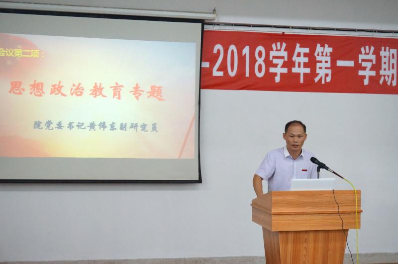 本次研讨会共分为两大部分,五项议程。研讨会在青春朝气的中国共青团团歌中启动。首先,院党委书记黄伟东副研究员为学生干部带来了新学期的团学第一课------思想政治教育专题讲话。黄伟东书记充分肯定了无限动漫