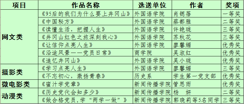 7件作品在全省高校“两学一做”学习教育大学生网络文化作品征集大赛中获奖