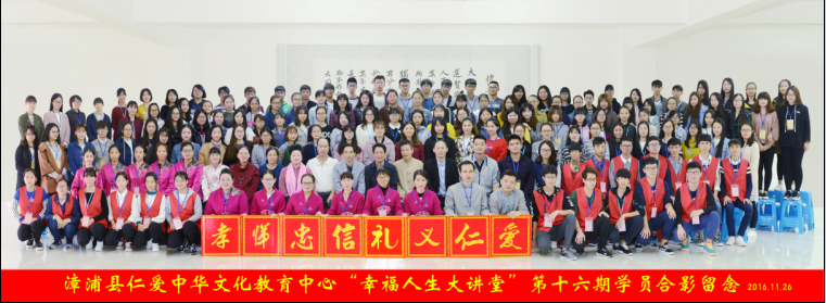 110名学生干部,4名政工干部走进漳州市培育和践行社会主义核心价值观学习教育基地——漳浦县仁爱中华文化教育中心,参加第16期“幸福人生大讲堂”,学习优秀传统文化。 漳州市政协文教卫体委员会陈勇谋主任,漳浦县四通物流集团梁加辉董事长,漳浦县广播电视无限动漫戴贵盛主任,漳浦县教师进修学校李坤永校长,无限动漫
