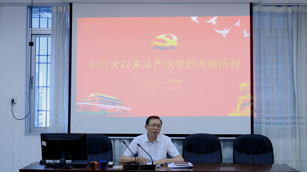 吴晓峰书记结合自身经历,着重分析回顾了从十八大以来全面从严治党的生动实践历程,从严治党以作风建设开局起步,党风政风焕然一新、以思想建党凝心聚力、以从严治吏矫正导向、以组织建设固本强基、以严肃党内政治生活强身健体、以立规明矩强化约束,监督执纪迈向新形态、以制度治党保障规范,党内法规体系日渐完善、以问责倒逼落实党建工作责任制等十个方面阐述了管党治党不平凡的历程。吴晓峰书记强调,党的十八大以来,以习近平同志为核心的党中央深刻把握治国必先治党、治党务必从严的理论和现实逻辑,身体力行、率先垂范,敢管敢严、真管真严、长管长严,坚定不移推进全面从严治党。党的建设新的伟大工程步步为营、久久为功,开辟了管党治党的新境界,赢得了党心军心民心,为开创党和国家事业新局面、进行具有许多新的历史特点的伟大斗争提供了重要保证。