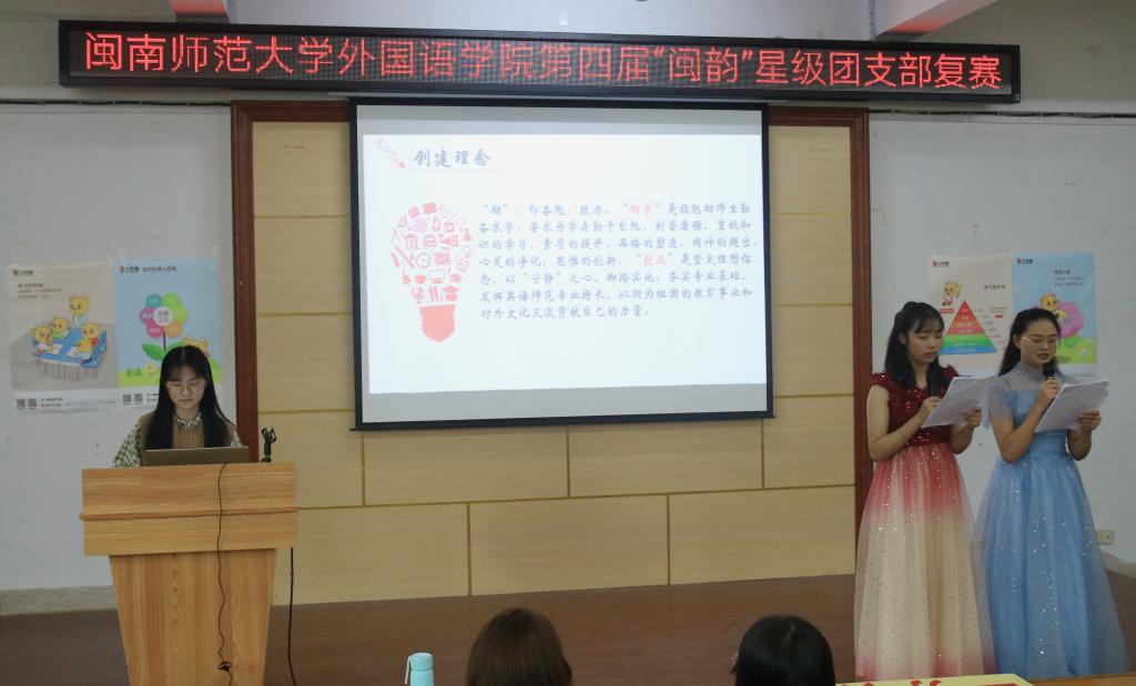 第四届“闽韵”星级团支部成果汇报复赛在逸夫楼梯二教室成功举办。院团委副书记张啸啸老师,辅导员蔡志桥、陈安迪、吴颖婕老师和17、18级候选团支部代表参加此次复赛。