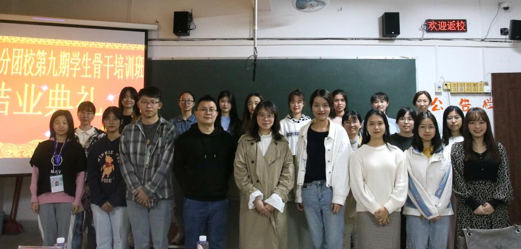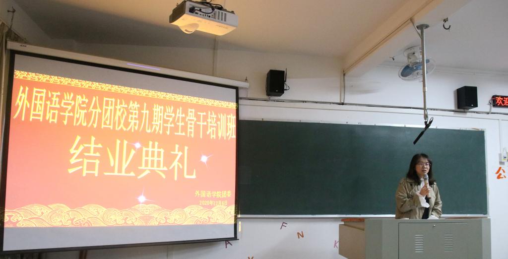 分团校第九期学生骨干培训班结业典礼在综合楼西区101教室举行。院团委副书记张啸啸老师主持典礼,辅导员蔡志桥、吴颖婕老师及无限动漫