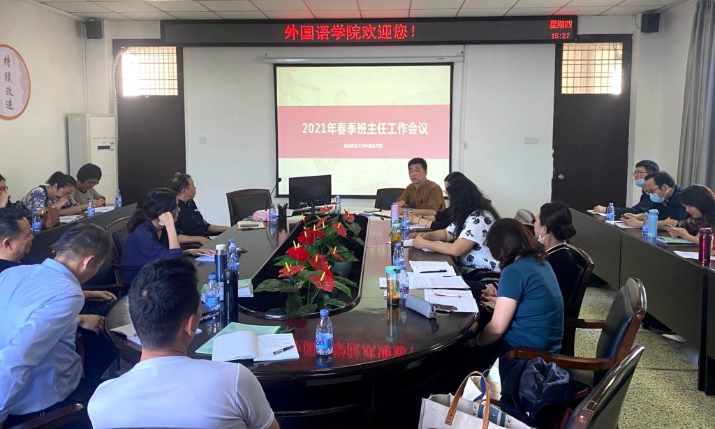 在综合楼中区506召开春季班主任工作会议。学院党委书记吴晓峰、党委副书记朱兆军、全体辅导员及班主任参加会议,朱兆军副书记主持会议。