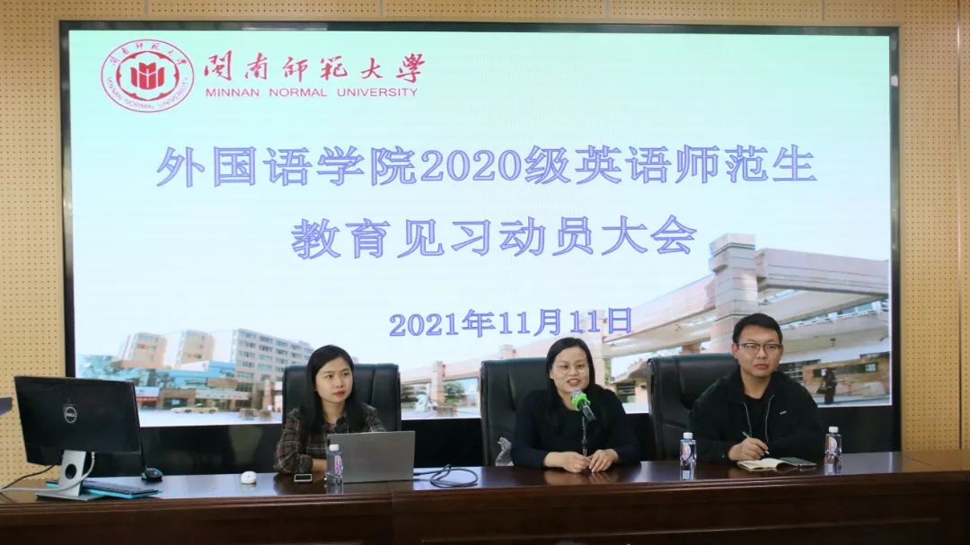 于逸夫楼梯教二开展了2020级英语师范生第二阶段见习动员大会。参会人员有英语系主任陈彩虹老师、见习负责老师李祯老师、20级辅导员陈雅鹏老师,以及20级英语(师范)全体实习学生。本次大会由李祯老师主持。