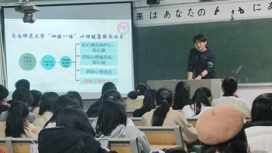 宿舍心理信息员培训在综西102举行。参加此次心理培训的成员有100余人,培训由梁燕辉老师主持。