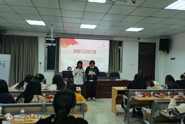 紧接着,各部门进行工作汇报,从本学期工作、优缺点及改进方法、未来展望三个方面做了总结反思。回顾过去,是为了更好地前行。
