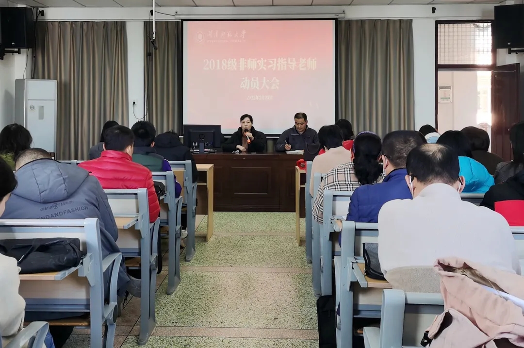 2月25日下午,无限动漫 在综中504会议室召开非师范专业实习生指导老师动员会,无限动漫 院长吴玉玲、副院长王羽青、商务英语系主任李虹静、翻译系主任黄金德、日语系主任庄苹及30余位实习指导教师参加了动员会。