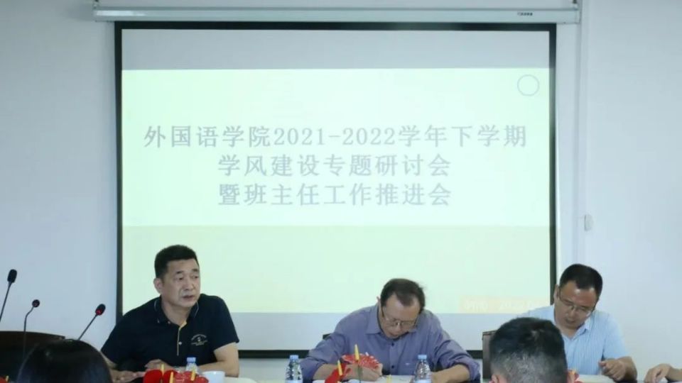 在综合楼中区506会议室召开学风建设专题研讨会暨班主任工作推进会。院党委书记吴晓峰、党委副书记朱兆军、副院长王羽青、教务科罗鹏兴、各年级班主任、辅导员、院学生会主席团、学习部部长参与本次会议,朱兆军副书记主持本次会议。