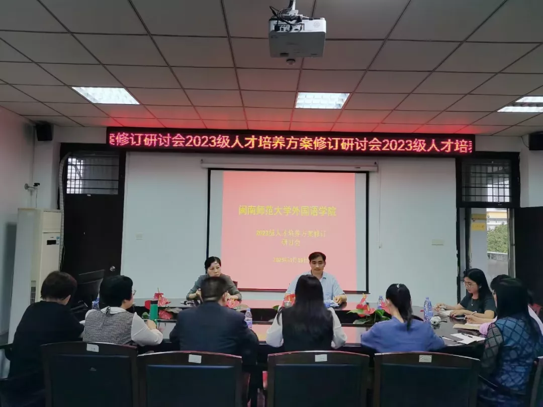 于2023年4月19日星期三下午3:00在综合楼中区506召开“2023级本科专业人才培养方案修订研讨会”与“2023年专业审核评估工作部署会”,吴玉玲院长及各本科专业系主任与教研室主任出席会议,会议由副院长王羽青主持。