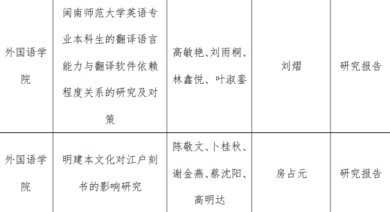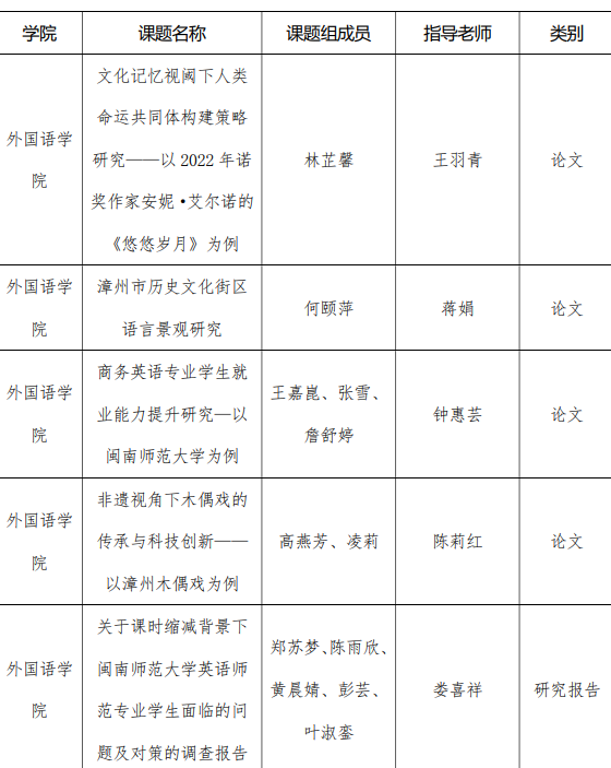 学生林芷馨、何颐萍、王嘉崑、张雪、詹舒婷、高燕芳、凌莉、郑苏梦、陈雨欣、黄晨婧、彭芸、叶淑銮、高敏艳、刘雨桐、林鑫悦、陈敬文、卜桂秋、谢金燕、蔡沈阳、高明达所负责的课题经校团委审核评估后圆满结项。