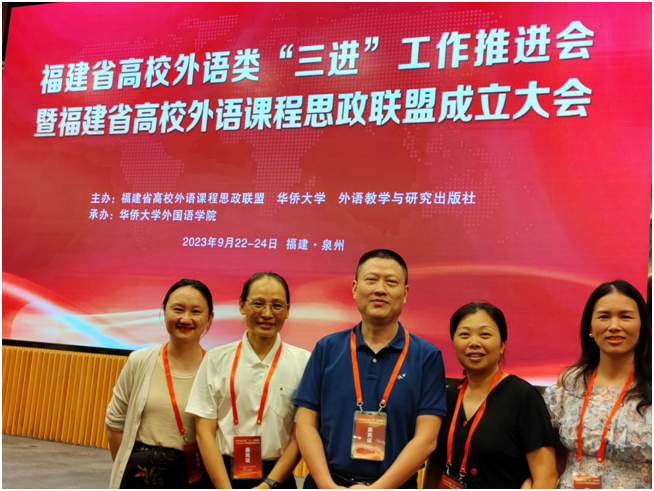 副院长肖仕琼、副教授陈绍恋、大外部主任周苏萍、大外部教研室主任钟晶和庄苑珺等五位教师,于2023年9月22日至9月24日在华侨大学参加了福建省高校外语类“三进”工作推进会暨福建省高校外语课程思政联盟成立大会。