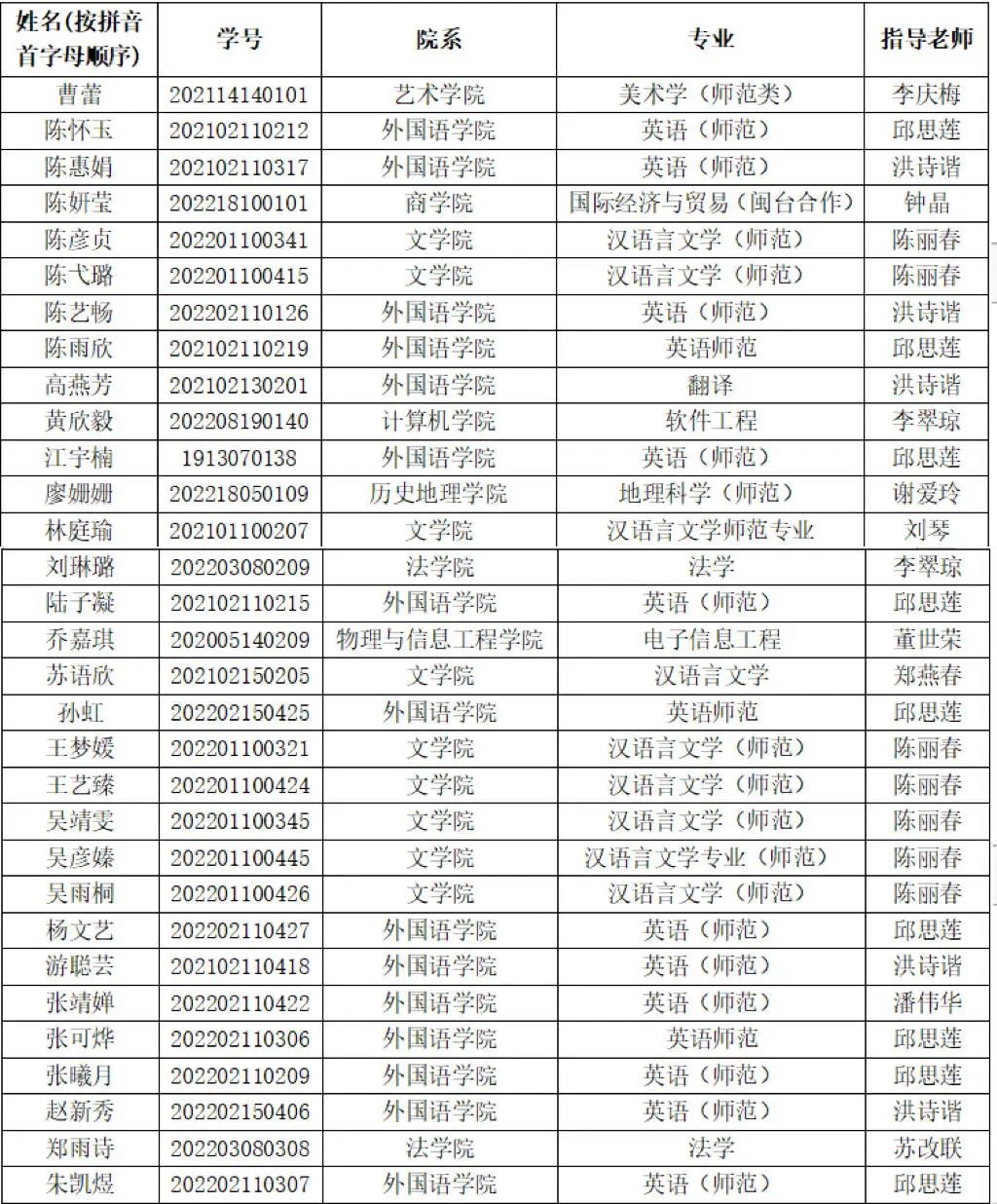 晋级选手名单如下: