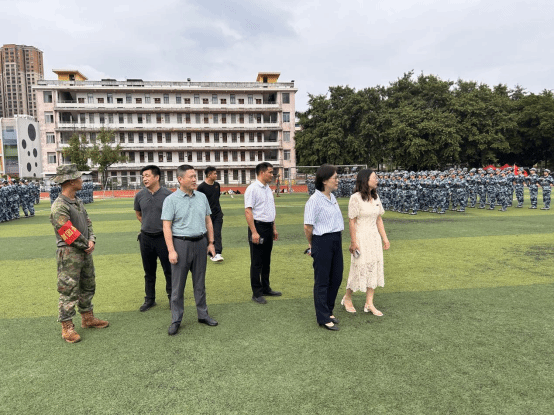 领导班子前往东区田径场,检查指导2024级本科新生军训工作,亲切看望正在接受艰苦训练的学生们。