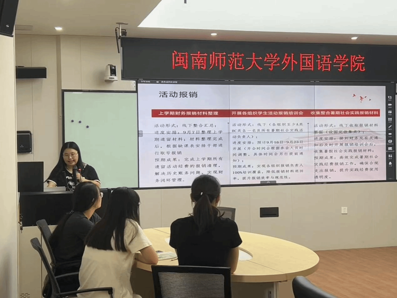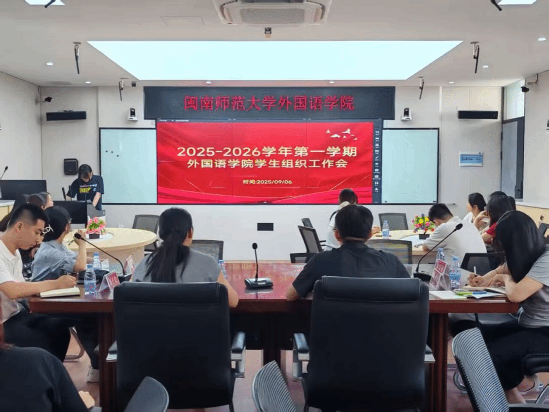 于综西502商务谈判室召开2025-2026学年第一学期学生组织工作会议。梁燕辉老师、林珠梅老师、陈子尧老师、戴秀真老师和郑小贝老师及各学生组织主席团A类干部出席会议。
