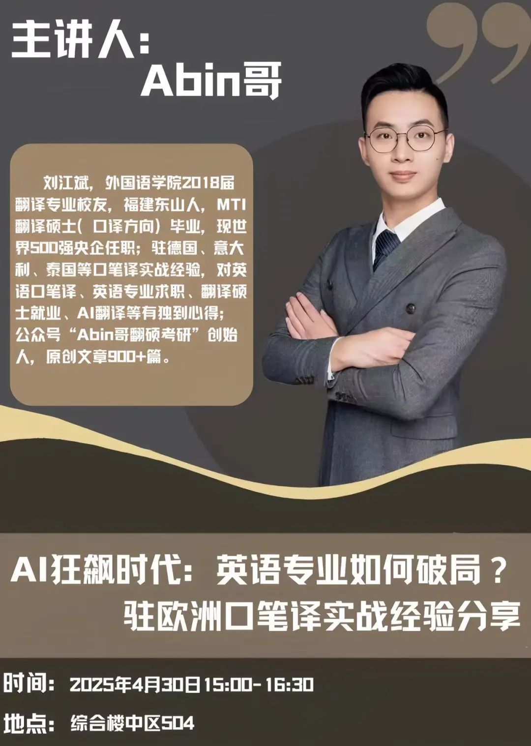 “青衿说”校友专场预告 |《AI狂飙时代:英语专业如何破局?驻欧洲口笔译实战经验分享》