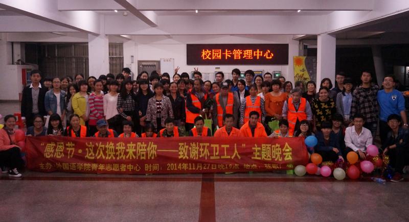 青年志愿者中心主办的“致谢环卫工人,这次换我陪你”感恩节主题晚会顺利召开。