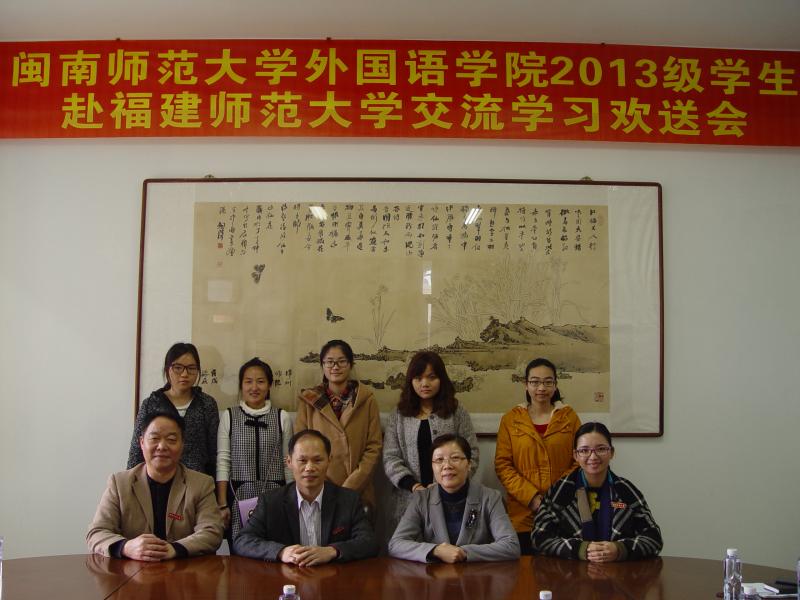 举办“2013级学生赴福建师范大学交流学习欢送会”, 学院领导黄伟东、吴玉玲、苏建华及2013级辅导员黄丽恋出席。