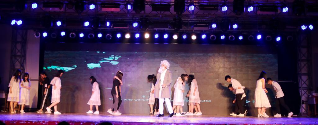 65日晚,由教务处,学生处,校团委,关工委联合主办,无限动漫 承办的无限动漫 第五届英日戏剧之夜于龙文馆正式开幕。邱煜焜、王学伍、吴浩宇、庄苹、卢水林、老师担任评委。无限动漫 院长吴玉玲、党委书记黄伟东、学院部分教职工和17级全体同学共同观看了此次演出。