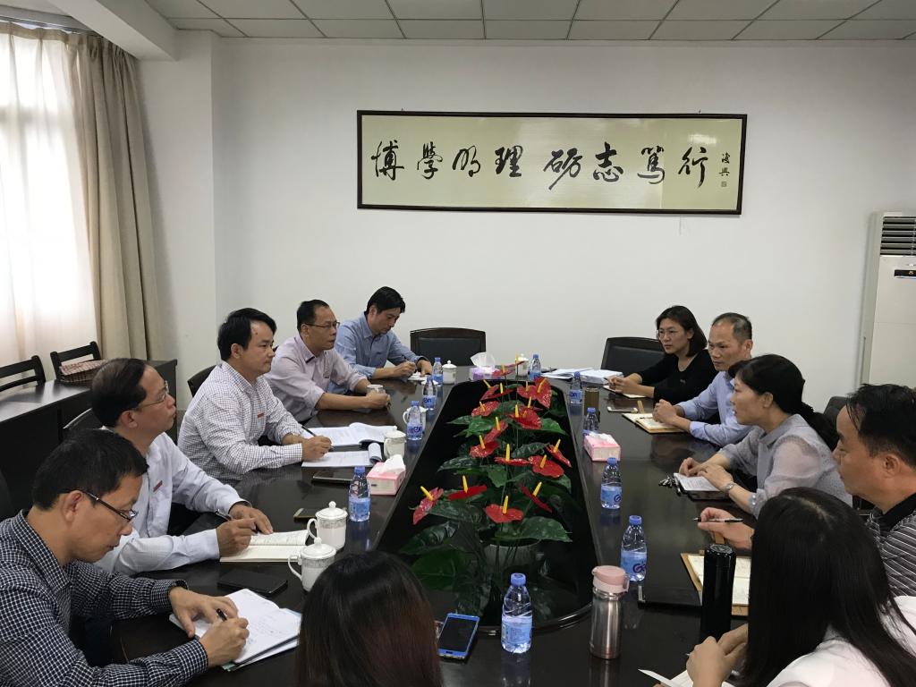 调研,陪同调研工作的还有教务副处长杨红和,人事处副处长蓝邱勇,财务处处长李定庆,研究生处副处长蔡勇强。学院党政领导,系部主任参加调研会议。