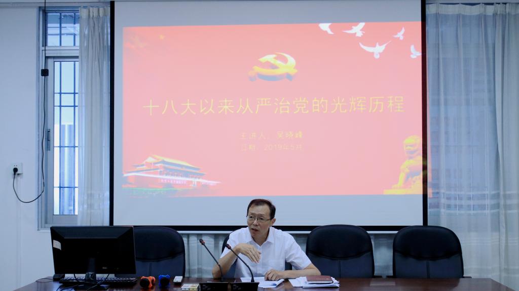 吴晓峰书记结合自身经历,着重分析回顾了从十八大以来全面从严治党的生动实践历程,从严治党以作风建设开局起步,党风政风焕然一新、以思想建党凝心聚力、以从严治吏矫正导向、以组织建设固本强基、以严肃党内政治生活强身健体、以立规明矩强化约束,监督执纪迈向新形态、以制度治党保障规范,党内法规体系日渐完善、以问责倒逼落实党建工作责任制等十个方面阐述了管党治党不平凡的历程。吴晓峰书记强调,党的十八大以来,以习近平同志为核心的党中央深刻把握治国必先治党、治党务必从严的理论和现实逻辑,身体力行、率先垂范,敢管敢严、真管真严、长管长严,坚定不移推进全面从严治党。党的建设新的伟大工程步步为营、久久为功,开辟了管党治党的新境界,赢得了党心军心民心,为开创党和国家事业新局面、进行具有许多新的历史特点的伟大斗争提供了重要保证。