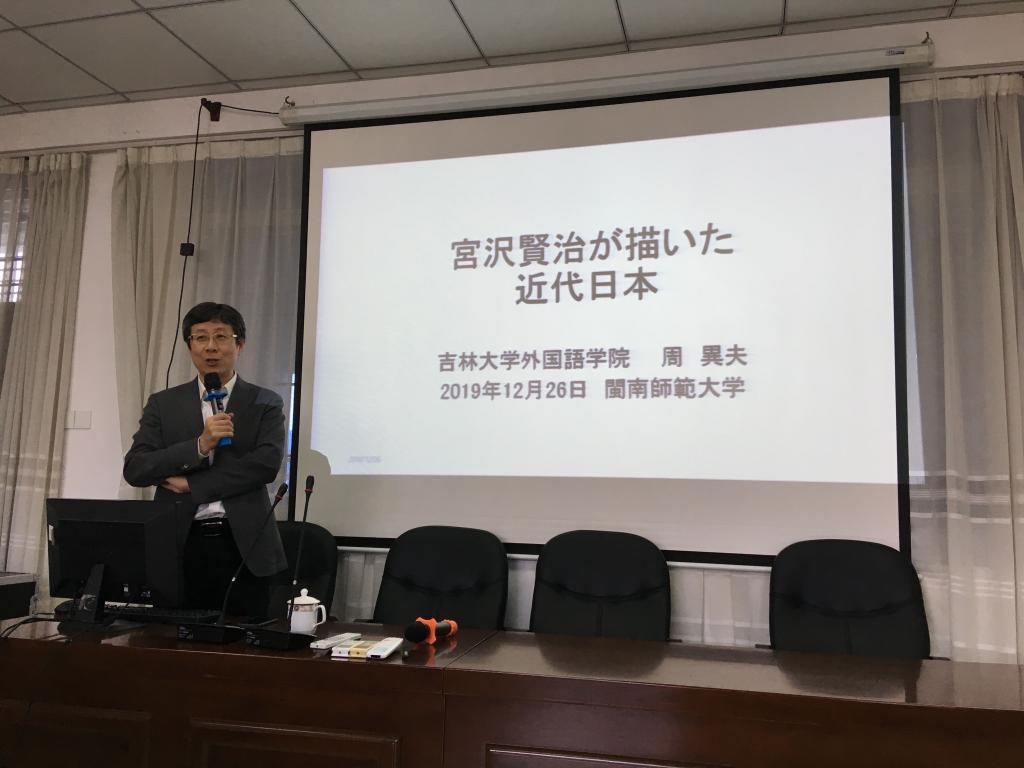 周异夫教授通过列举宫泽贤治的几部具有代表性的作品,进行文本的细节分析,结合详实的数据调查统计及时代背景,探讨了宫泽贤治的作品中所反映的日本近代的社会特征、矛盾等,进而阐述了作者抨击近代日本在向西方学习的过程中原样照搬、毫无创新的态度。指出从文学出发,进而投注对社会文化、历史脉络变迁的人文关怀,是以现代眼光解读文学作品的基本要义,亦是未来学问朝多元学问领域交汇融合发展的可能方向。为老师、同学们今后学习和研究日本文学提供了新的思路。