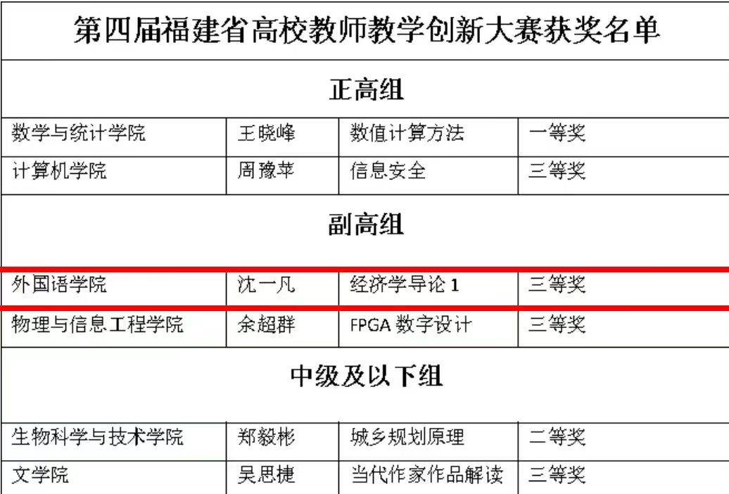 沈一凡副教授荣获副高组三等奖。