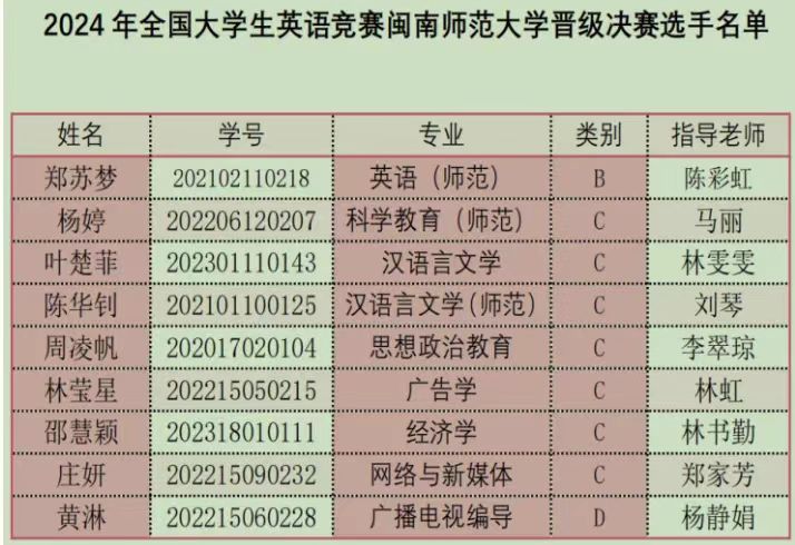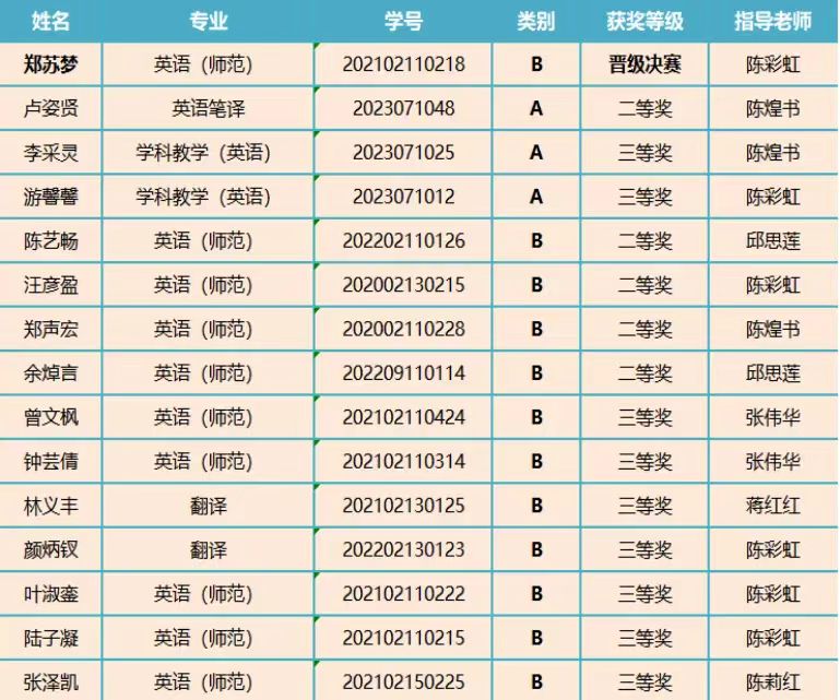 2024年全国大学生英语竞赛A类和B类获奖名单如下: