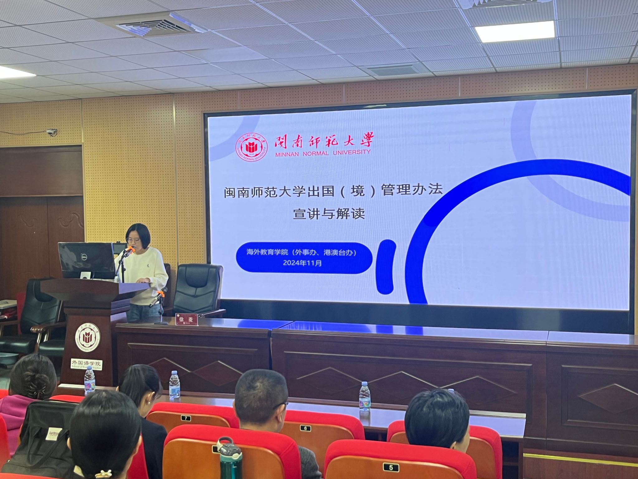 邀请财务处、海外教育学院相关科室负责人来院开展政策解读及业务能力指导培训。会议在在逸夫楼梯教二召开,学院全院教职工参加了会议。