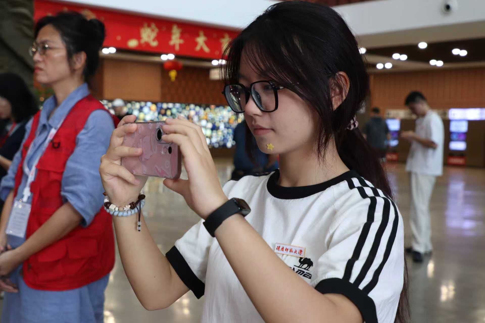 展厅内,志愿者用中英文进行专业讲解,并能根据观众需求调整内容。面对外国游客,他们不仅介绍文物价值,更生动讲述其背后的民族情感。“用世界听得懂的方式讲述中国故事,让我感受到语言的力量,”一位志愿者说。