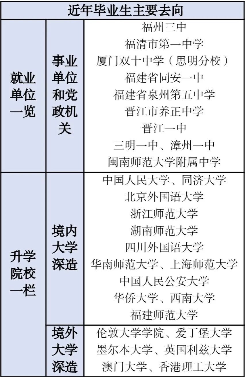 历史最为悠久的专业之一。2007年开始招收全日制课程与教学论(英语)研究生,2010年开始招收全日制学科教学(英语)研究生。2012年本专业获得福建省专业综合改革建设试点专业,2019年获批为福建省一流本科专业建设点,2021年获批为国家级一流本科专业建设点,同年通过教育部普通高等学校师范类专业中学英语二级认证。英语(师范)专业传承数十载师范教育积淀,专业依托 “理论奠基 — 实践赋能 — 创新拓展” 立体化培养体系,由骨干教师深耕教学一线,行业专家领航实践前沿,并配备先进智慧教室与完善教育实践基地,打造浸润式成长平台。