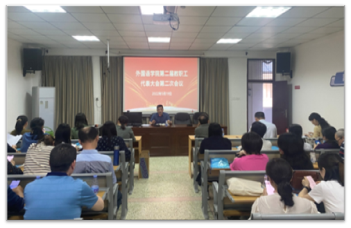 在综合楼中区504召开第二届教职工代表大会第二次会议。党政领导班子和教职工共56名代表出席会议,会议由党委副书记朱兆军主持。