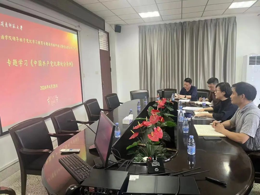 领导班子党纪学习教育读书班开班式暨党委理论学习中心组专题学习会在综合楼506召开。学院党委理论学习中心组成员参加,学习会由学院党委书记陈慧燕主持。